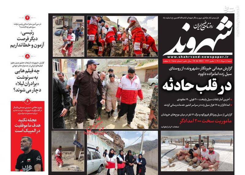 صفحه نخست بیشتر روزنامههای شنبه به اخبار و تصاویر بارش باران و جاری شدن سیل در استان های مختلف کشور از جمله تهران و امام زاده داود اختصاص پیدا کرده است.
