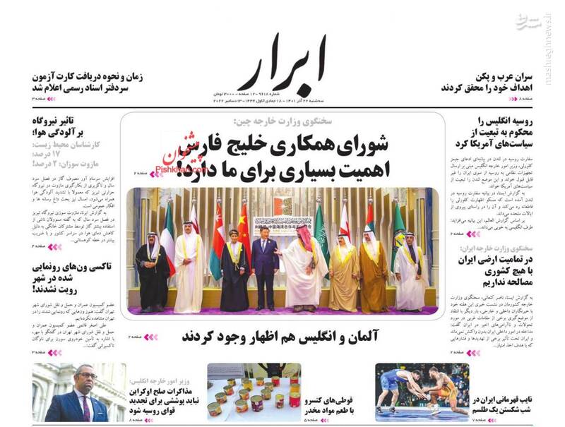 رشد ۳ برابری سرمایهگذاری خارجی در مقایسه با سال اوج برجام، رد اغتشاش بر سفره مردم، حرکت عدلیه در مسیر عدل و امان، از جمله تیترهای روزنامهها در روز سهشنبه ۲۲ آذر است.