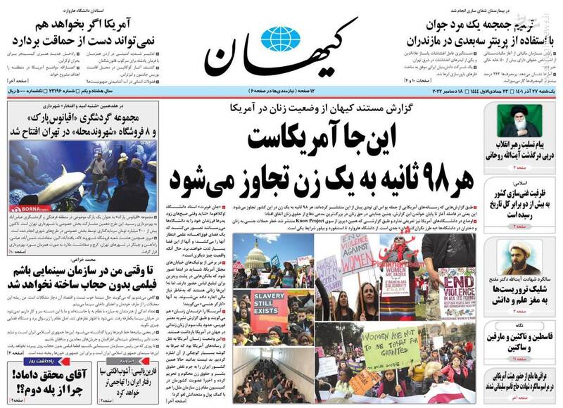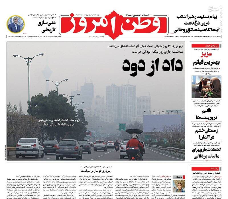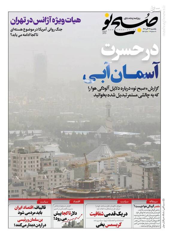 داد از دود، اینجا آمریکاست هر ۹۸ ثانیه به یک زن تجاوز میشود، مالیات بر سوداگری معطل چیست؟ از جمله تیترهای روزنامهها در روز یکشنبه ۲۷ آذر است.