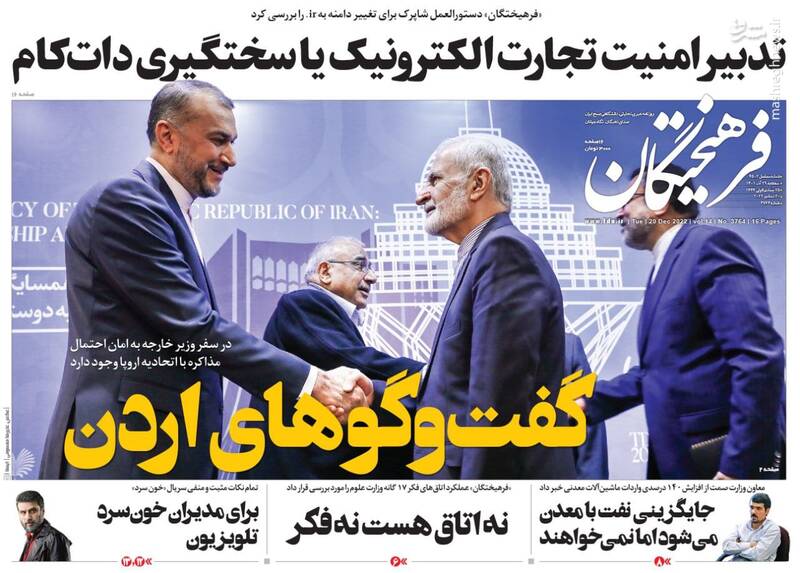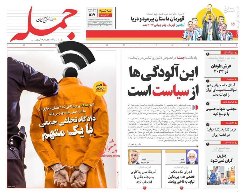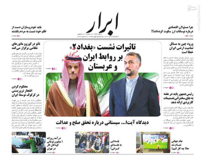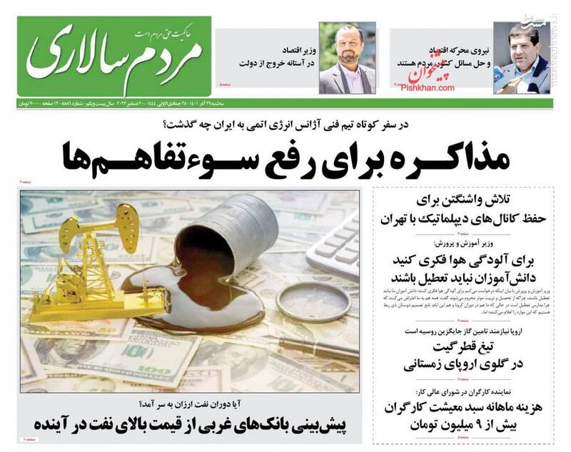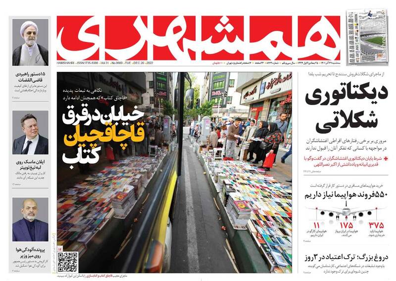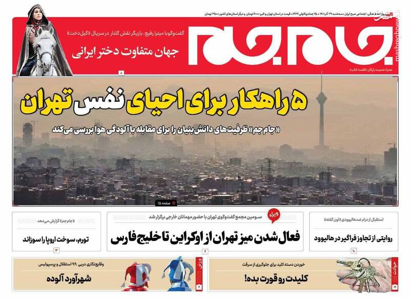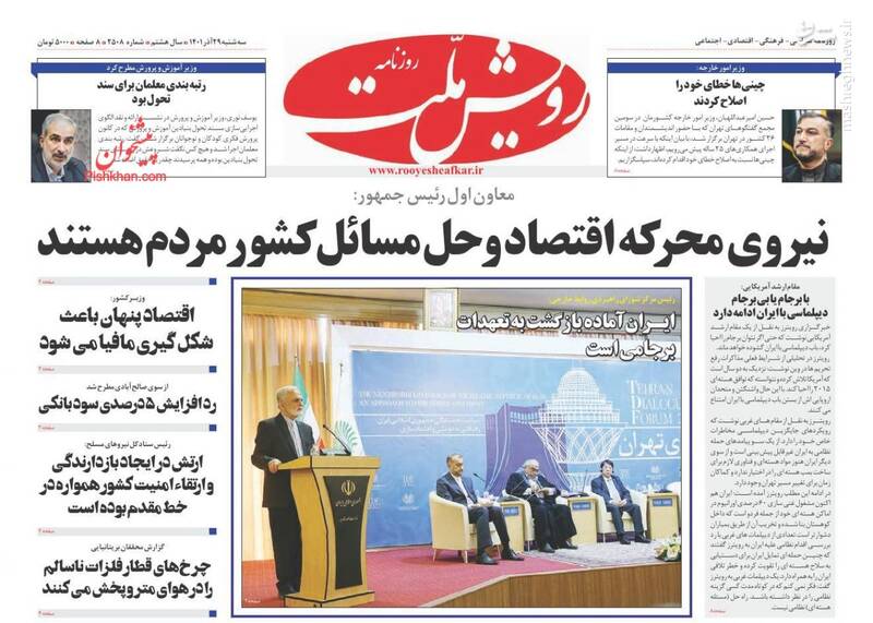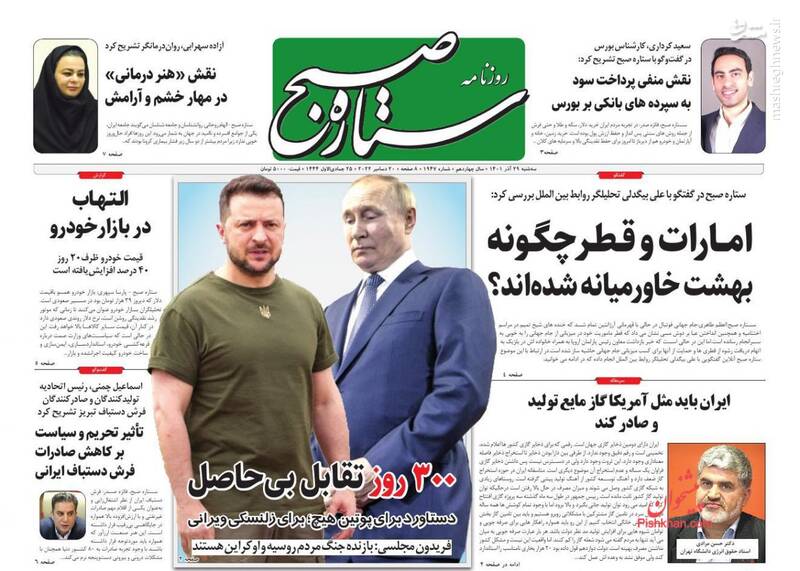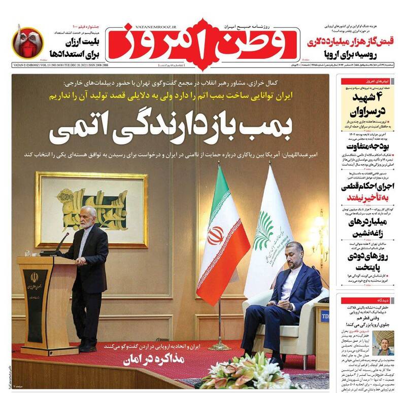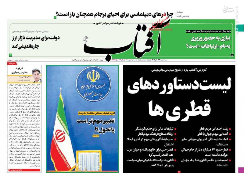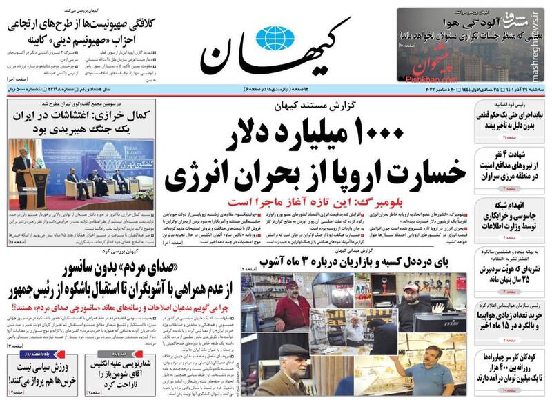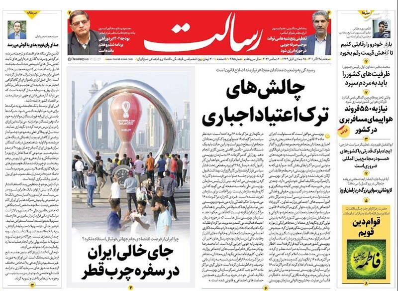 دیکتاتوری شکلاتی، جای خالی ایران در سفره چرب قطر، ۱۰۰۰ میلیارد دلار خسارت اروپا از بحران انرژی،توانایی ما در تولید بمب اتم خودش بازدارنده است، از جمله تیترهای روزنامهها در روز سهشنبه ۲۹ آذر است.