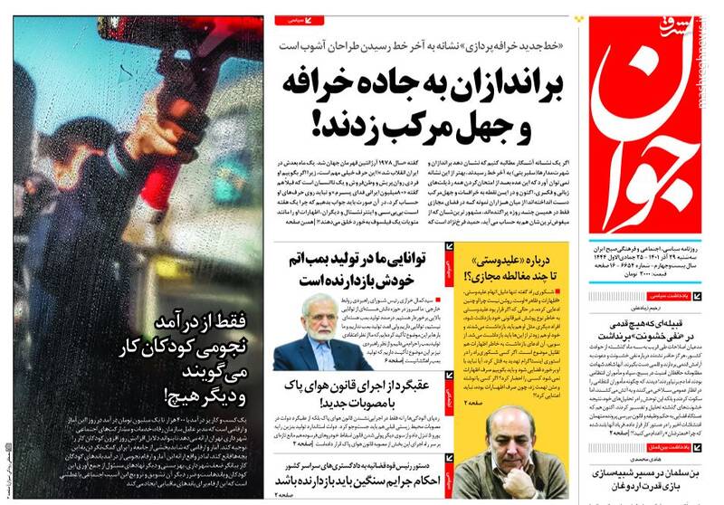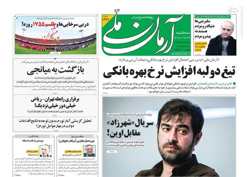 دوشنبه ؛ 24 آذر 1404 عکس/ صفحه نخست روزنامههای سهشنبه ۲۹ آذر