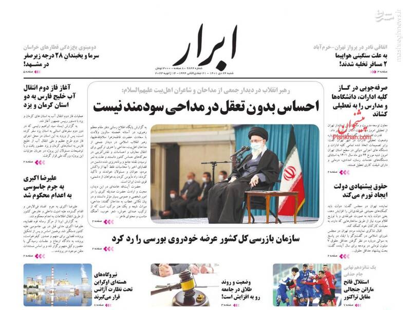 اراده جمهوری اسلامی بر نقشه جامع دشمن پیروز شد ، مردم امیدوار به تغییر، مزد مردمداری، حضور امید،مصرف گاز خانگی درایران ۶ برابر دنیا، تیتر برخی روزنامه های شنبه ۲۴ دیماه است.