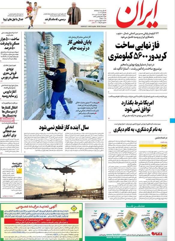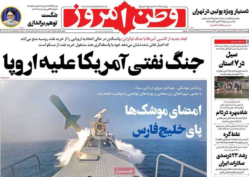 همدلی مردم و مسئولین در مدیریت چالش گازی، امضای موشکها پای خلیج فارس، کلاف پیچیده آلودگی، سپاه را در خلیج فارس مشاهده خواهید کرد تیتر اصلی برخی روزنامههای چهارشنبه ۲۸ دیماه است.