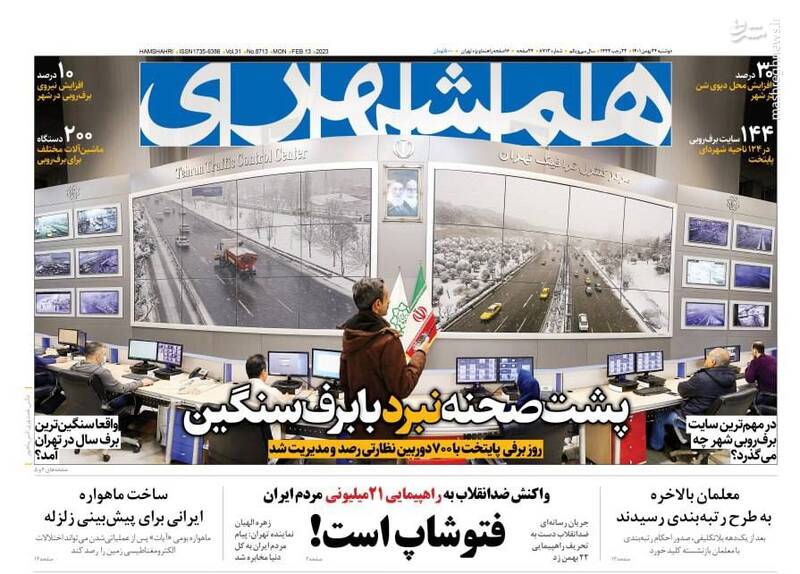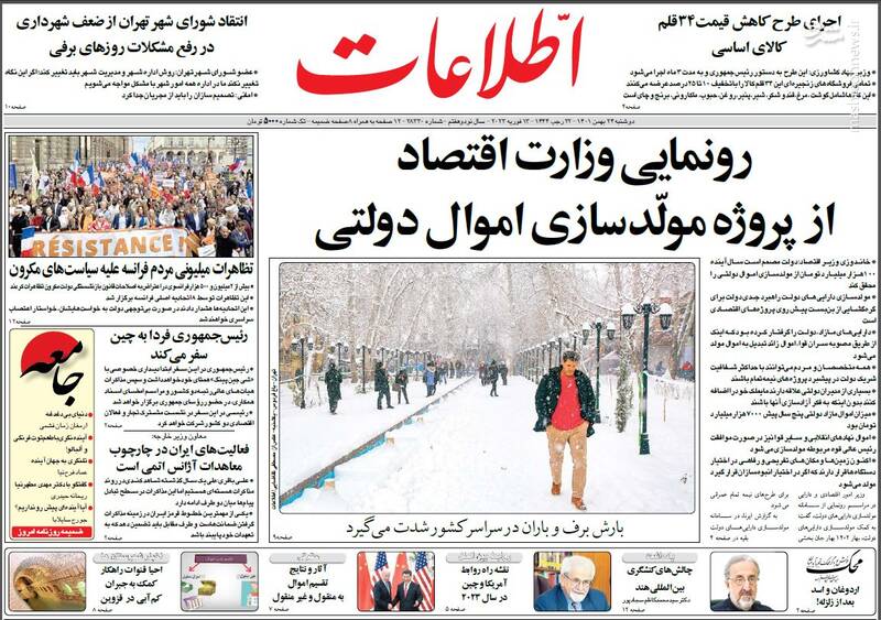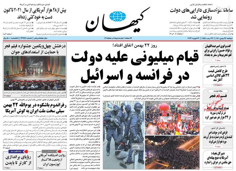 قیام میلیونی علیه دولت در فرانسه و اسرائیل ، فجر به انقلاب فخر کرد، بازی کاخ الیزه با آتش، فیلمفارسی فرانسوی، تیتر برخی روزنامههای دوشنبه ۲۴ بهمن ماه ۱۴۰۱ است