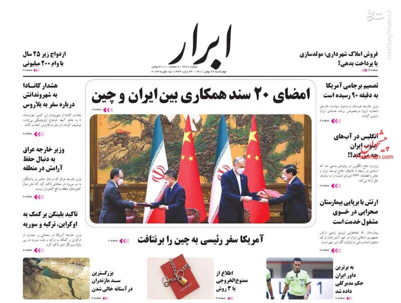 در مسیر ابرشیم، دیپلماسی عصر پساآمریکا، عاملان عقبماندگی دهه ۹۰ در پوشش ناجی ایران ظاهر شدند، دست پر رئیسی، تیتر برخی روزنامههای چهارشنبه ۲۶ بهمن ماه ۱۴۰۱ است