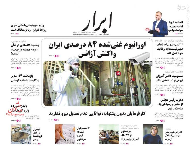 تصمیمات جدید بانک مرکزی برای کنترل بازار ارز، شارژ ۸۴ درصدی مذاکرات هستهای ،کوتاهیها پشت حضور حماسی مردم پنهان نشود، تیتر برخی روزنامههای سهشنبه دوم اسفند است.