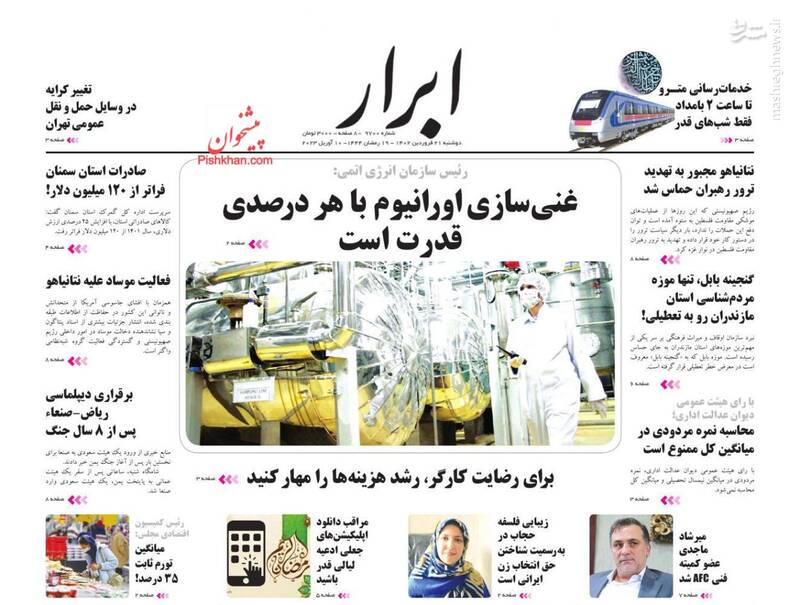 دوشنبه ؛ 24 آذر 1404 عکس/ صفحه نخست روزنامههای دوشنبه ۲۱ فروردین ماه