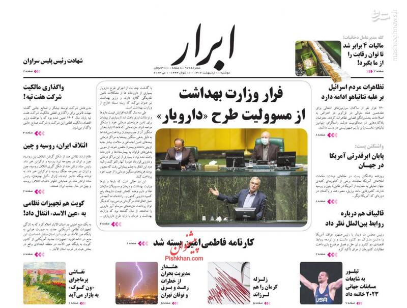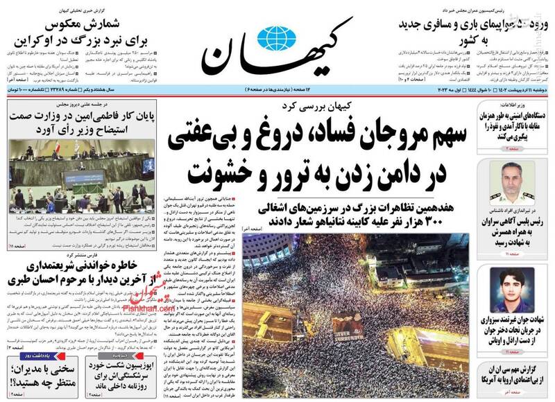 ترور آگاهی، "خودرو" بلای جان یک ملت و یک وزیر، گزارش مهم سی‌ان‌ان از بی‌اعتمادی اروپا به آمریکا، خودرو وزیر گرفت!، از جمله تیترهای برگزیده روزنامه‌های دوشنبه ۱۱ اردیبهشت ۱۴۰۲ است.