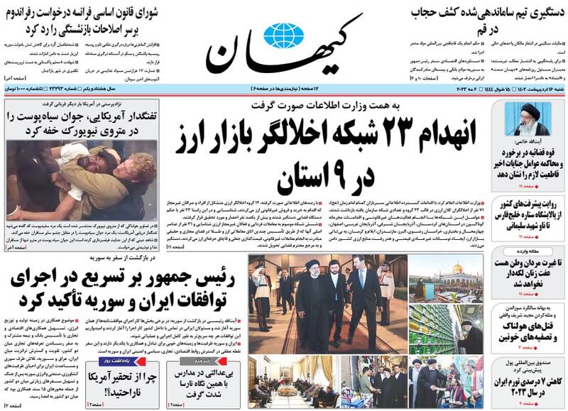 انهدام ۲۹ شبکه اخلالگر بازار ارز در ۹ استان، نسخه مهار تورم، ادعاهای بادکنکی، ائتلاف پیروز غرب آسیا، پرتره بی عدالتی محض تیترهای برگزیده روزنامههای شنبه ۱۶ اردیبهشت ۱۴۰۲ است.