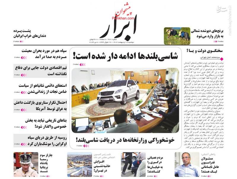 شاسیبلندها را گرفته یا نگرفته باشند مدعیان اصلاحات سوارش شدهاند، آنچه هاشمی ننوشت، دروی خودکفایی گندم، دارویار درخطر، تیترهای برگزیده روزنامههای دوشنبه ۱۸ اردیبهشت ۱۴۰۲ است.