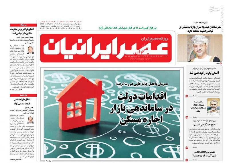 سلطان میانجی چرا دوباره آمد، آمریکا در صندوق ترکیه نبرد، عمان بالاتر از واسطه و پیامآور، نرخ بیکاری در ۲۳ استان تکرقمی شد، از تیترهای برگزیده روزنامههای دوشنبه ۸ خرداد ۱۴۰۲ است.