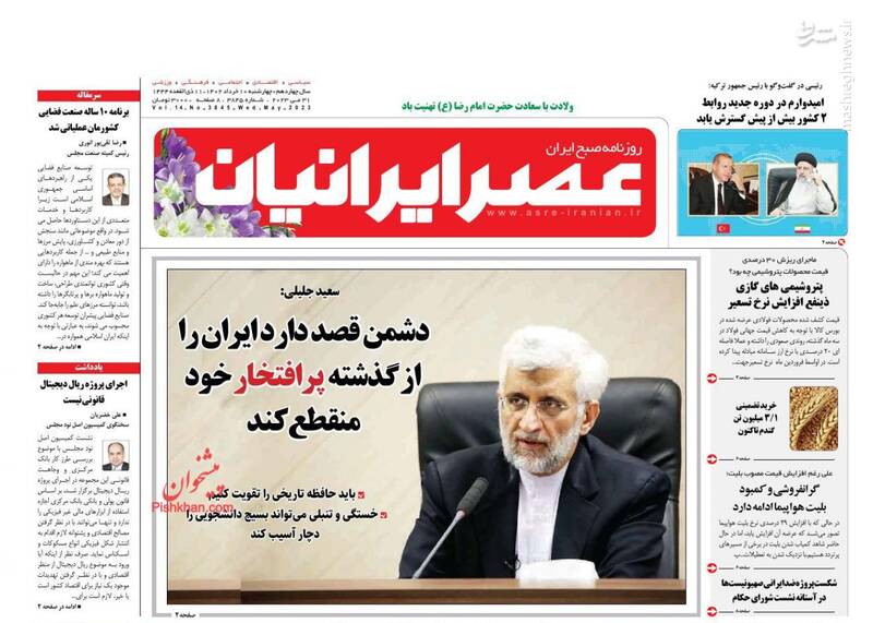 نوبت عقب نشینی آژانس، آموزشوپرورش در مسیر تحول بنیادین، نشانههای توافق از مسقط تا وین و واشنگتن، از تیترهای برگزیده روزنامههای چهارشنبه ۱۰ خرداد ۱۴۰۲ است.