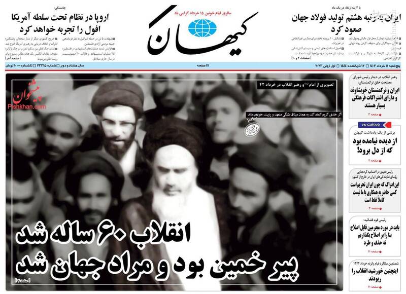 به رسم خویشاوندی، انقلاب ۶۰ساله شد پیر خمین بود و مراد جهان شد، احیاگر دین و ملت، از تیترهای برگزیده روزنامههای پنجشنبه یازدهم خرداد ۱۴۰۲ است.