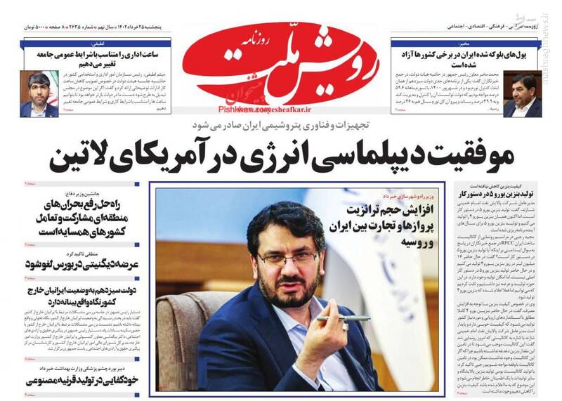 وزیر خزانهداری آمریکا: تحریمها باعث افزایش جایگزینی دلار شده است، سکوت امریکای لاتین به احترام ندای سلیمانی، دشمن صهیونیستی در موضع انفعال، از تیترهای برگزیده روزنامههای پنجشنبه ۲۵خرداد ۱۴۰۲ است.