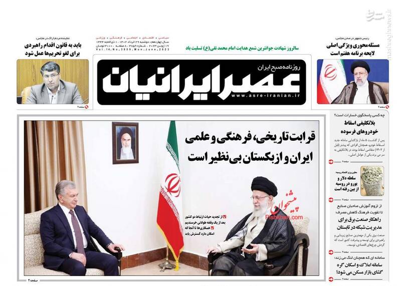شکارگاه پارلمان، رئیسی: بانکهای اصلاحناپذیر از گردونه نظام بانکی حذف میشوند، قرابت بینظیر ایران و ازبکستان، از تیترهای برگزیده روزنامههای دوشنبه ۲۹ خرداد ۱۴۰۲ است.