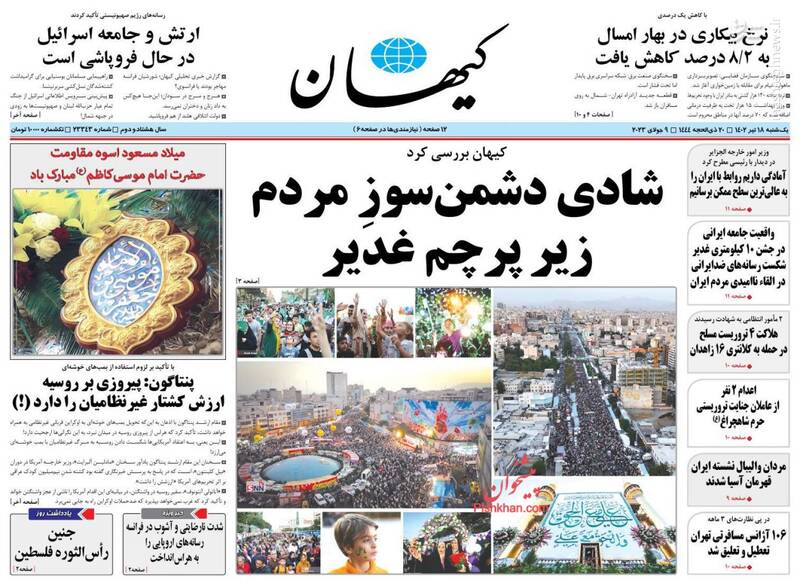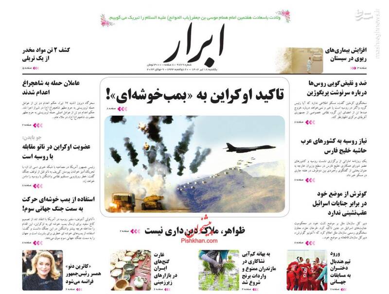 دکتر و مهندس تقلبی؟، ختم خطبههای خشونت به تروریسم، مُهر کمان آرش بر میدان آرش، تیترهای برگزیده روزنامههای یکشنبه ۱۸تیرماه ۱۴۰۲ است.