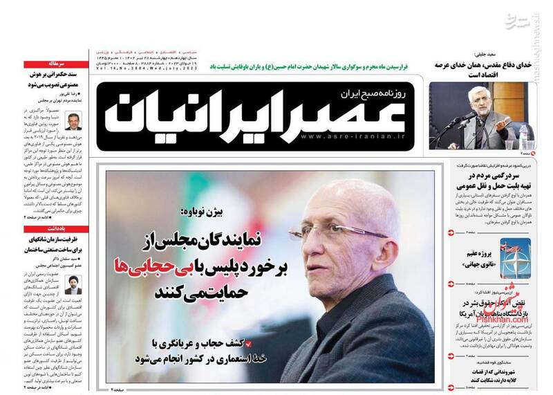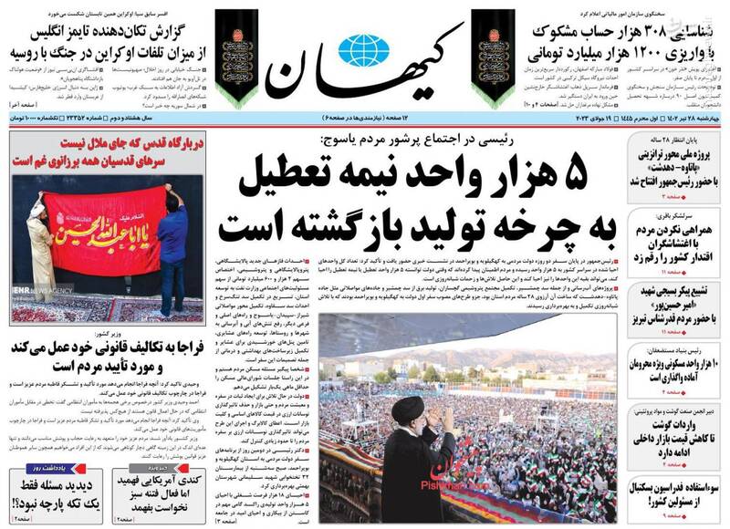 ماه عزای اشرف اولاد آدم است، محاکمه دادگاههای غیرعلنی، ۵ هزار واحد نیمهتعطیل به چرخه تولید بازگشته است، تیترهای برگزیده روزنامههای چهارشنبه ۲۸ تیرماه ۱۴۰۲ است.