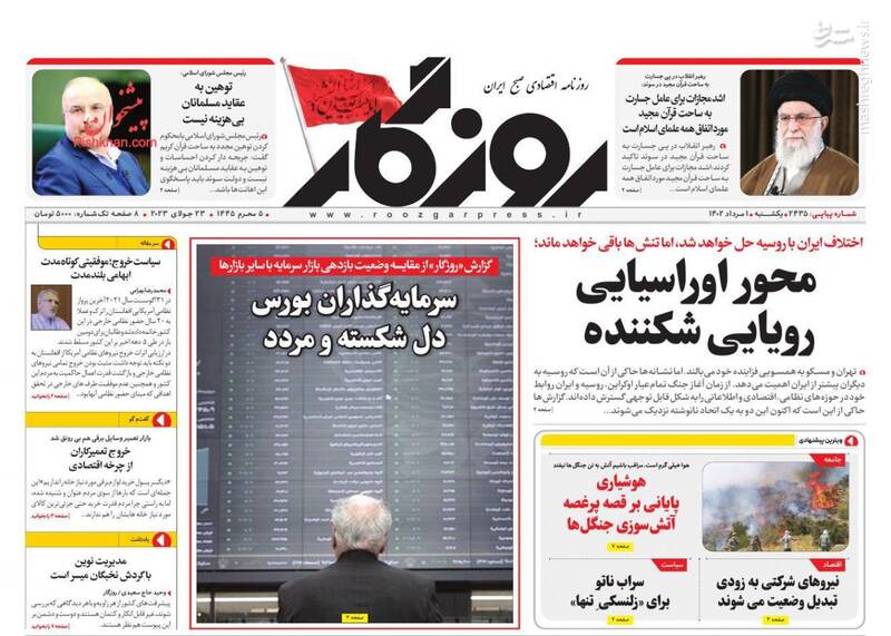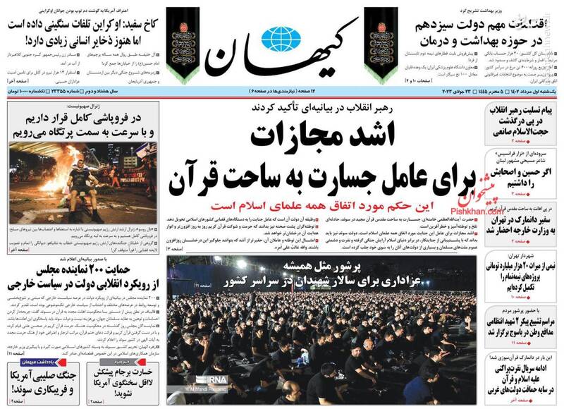 حریف نور نمی شوند، آرایش جنگی غرب مقابل اسلام، پزشک خانواده زیرتیغ نقد، اشد مجازات برای عامل جسارت به ساحت قرآن، تیترهای برگزیده روزنامههای یکشنبه اول مرداد ۱۴۰۲ است.