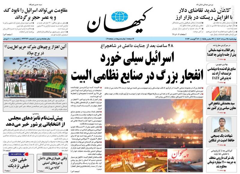 شب های سرخ اسرائیل، اسرائیل سیلی خورد انفجار بزرگ در صنایع نظامی البیت ، ابتکار تهران انفعال واشنگتن، از جمله موضوعات مورد توجه روزنامههای چهارشنبه ۲۵ مرداد است.