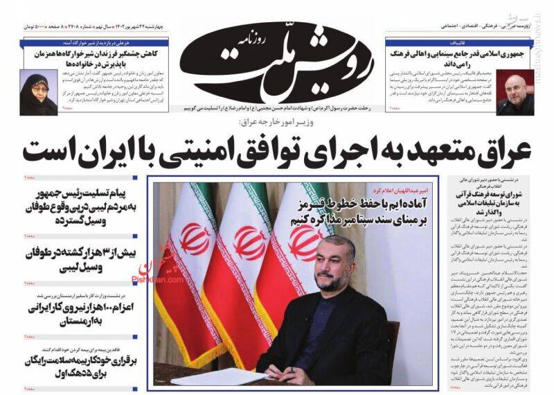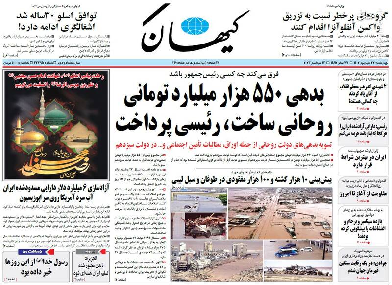 ابر بدهکار ایران، غرب با اغتشاش پاییزی مقدسات جامعه ایران را هدف گرفت، بالاتر از تمام معجزهها، موضوعات مورد توجه روزنامههای چهارشنبه ۲۲ شهریور است.