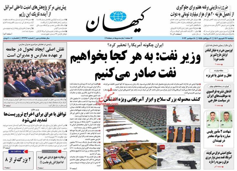 پاییز دروغ، پاسخ فوری به اروپا با تعلیق ۸ بازرس آلمانی و فرانسوی، وزیر نفت: به هر کجا بخواهیم نفت صادر میکنیم، موضوعات مورد توجه روزنامههای دوشنبه ۲۷ شهریور است.