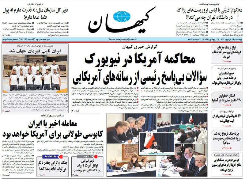 کیفرخواست علیه امریکا، بی خانمانی تجزیه طلبان، محاکمه آمریکا در نیویورک سؤالات بیپاسخ رئیسی از رسانههای آمریکایی، موضوعات مورد توجه روزنامههای چهارشنبه ۲۹ شهریور است.