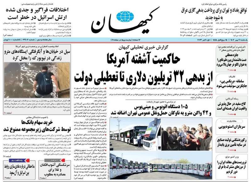 حکمیت آشفته آمریکا از بدهی ۳۲ تریلیون دلاری تا تعطیلی دولت، نوای فرهنگ بر ساز ایرانی، خواب ماشینها در جاده مخصوص و... از موضوعات مورد توجه روزنامههای یکشنبه ۹ مهر ۱۴۰۲ است.