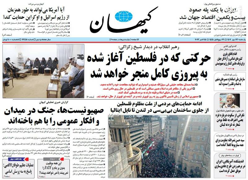 دست مقاومت روی ماشه، حرکتی که در فلسطین آغاز شده به پیروزی کامل منجر خواهد شد، ساعت صفر در دست مقاومت است، تیتر برخی روزنامه های یکشنبه ۲۳ مهرماه ۱۴۰۲ است.