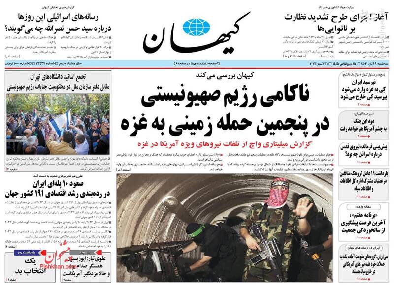 ۷ اکتبر پایان ۲ دولتی، ناکامی رژیم صهیونیستی در پنجمین حمله زمینی به غزه، تانکهای تلآویو در نقطه شکست ۲۰۱۴ ، تیتر برخی روزنامههای سهشنبه نهم آبان ماه ۱۴۰۲ است.
