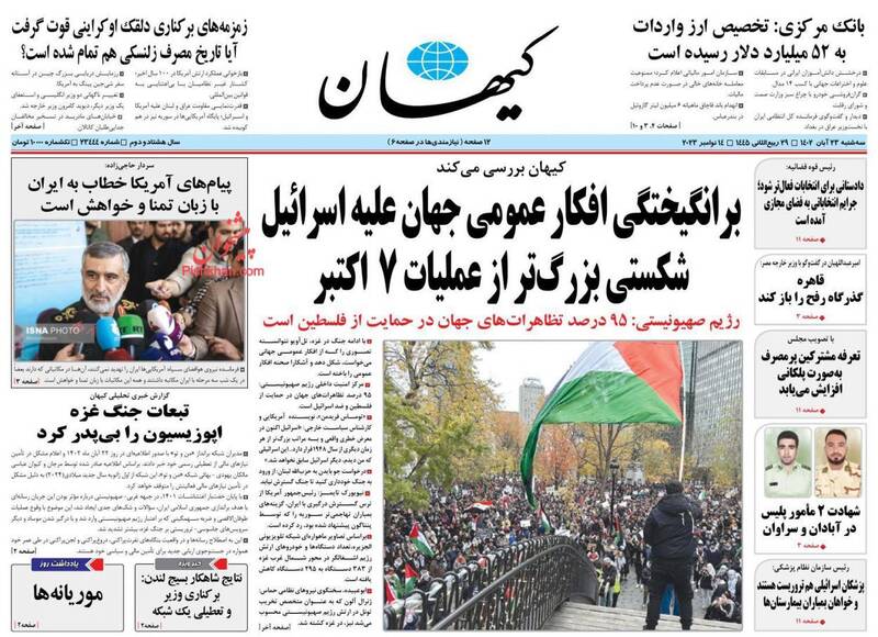 برانگیختگی افکار عمومی جهان علیه اسرائیل شکستی بزرگتر از عملیات ۷ اکتبر، غزه را دوباره بسازیم، دلواپسی فاشیستها، خصومت یا رقابت و... تیتر برخی روزنامههای سهشنبه ۲۳ آبان ۱۴۰۲ است.