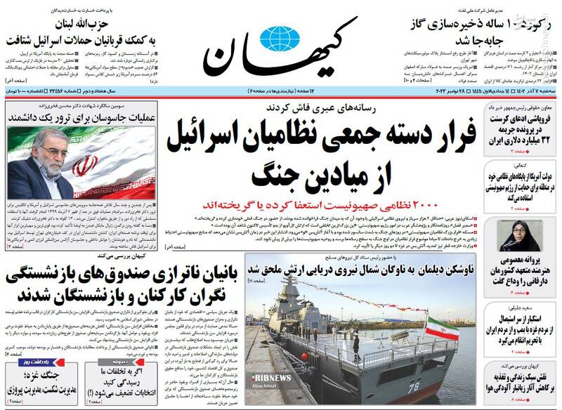 قهرمان بازدارندگی هسته ای، فرار دسته جمعی نظامیان اسرائیل از میادین جنگ، آتشبس غزه ۲ روز دیگر تمدید شد، فاصله زیاد بازار تا جیب مردم، تیتر برخی روزنامههای سهشنبه ۷ آذر ۱۴۰۲ است.