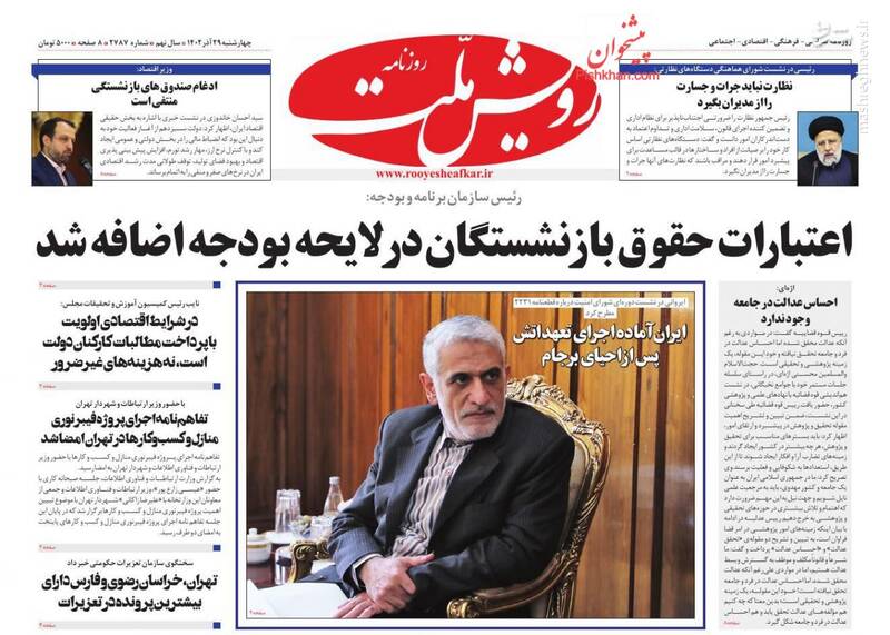 دوشنبه ؛ 24 آذر 1404 عکس/ صفحه نخست روزنامههای چهارشنبه ۲۹ آذر ۱۴۰۲