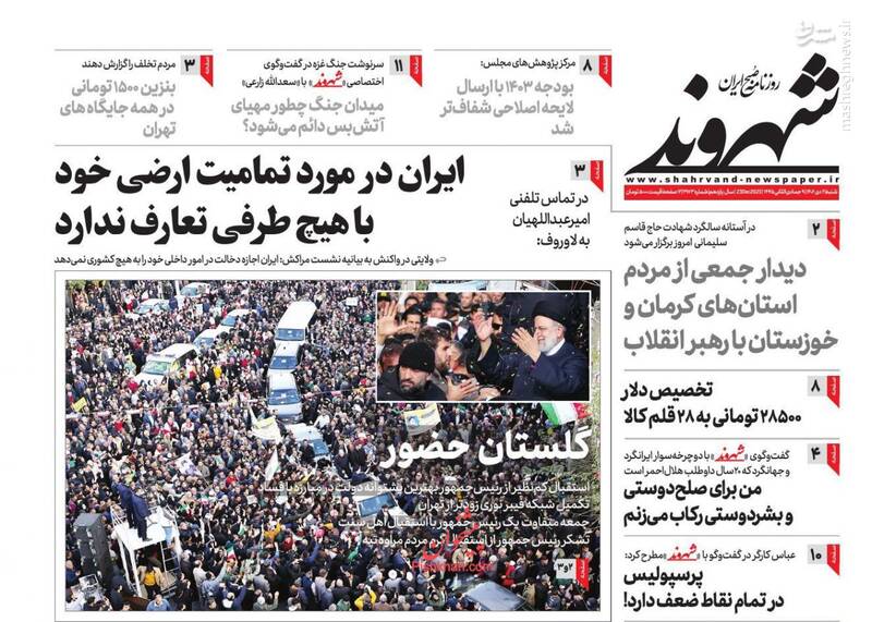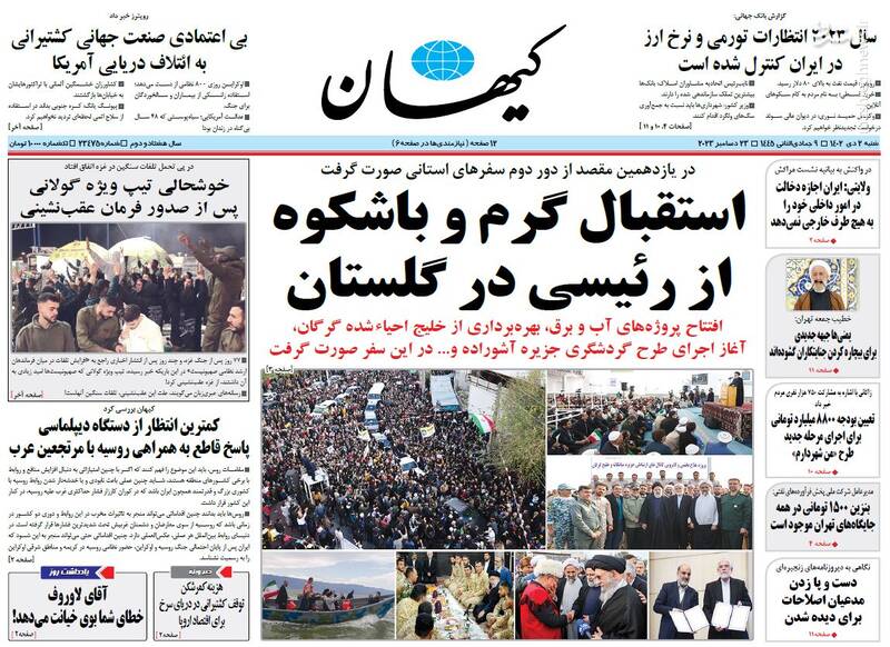 هشدار ایران به روسیه؛ تعارف نداریم، غرق خون، استقبال گرم و باشکوه از رئیسی در گلستان، افتضاح فرار گولانی، یلدای دولت در گلستان، تیتر برخی روزنامههای شنبه دوم دی ماه است.