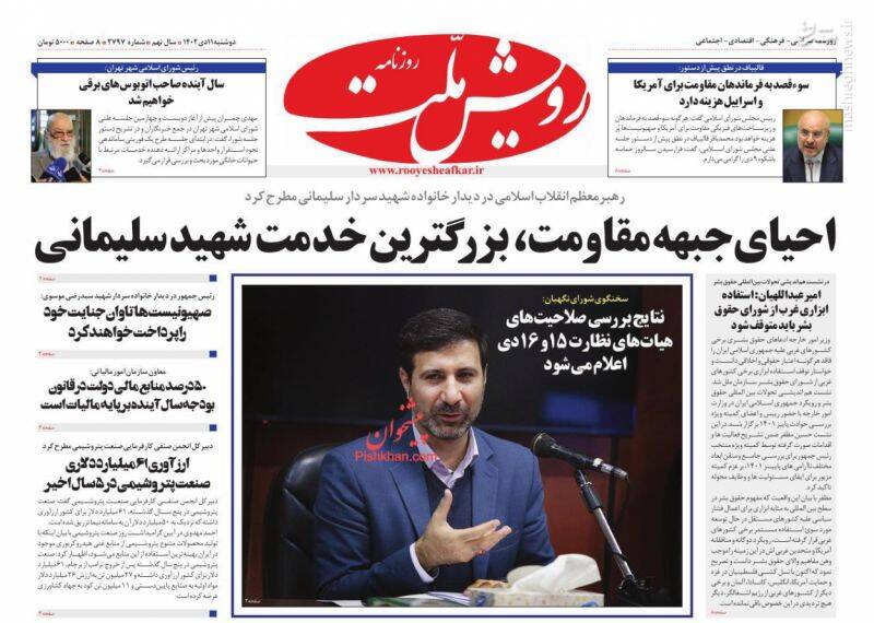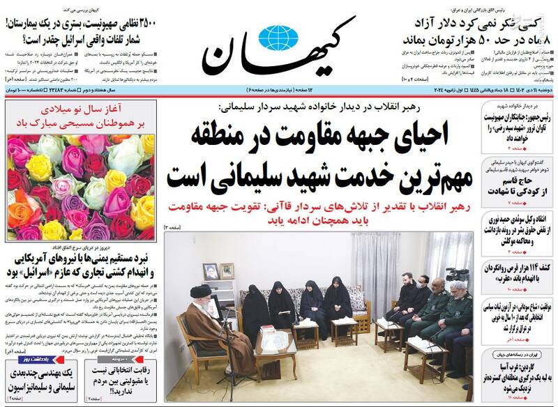 ۲۰۲۳ سال دلارزدایی، احیای جبهه مقاومت در منطقه مهمترین خدمت شهید سلیمانی است، تشتت در کابینه رژیم صهیونیستی، حاج قاسم احیاگر جبهه مقاومت، تیتر برخی روزنامههای دوشنبه یازدهم دی ۱۴۰۲ است.
