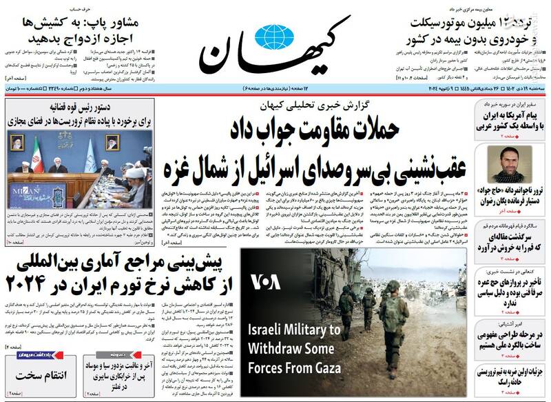هزار توی تونل ها، ۲۲درصد آب پایتخت هدر میرود، حملات مقاومت جواب داد عقبنشینی بیسروصدای اسرائیل از شمال غزه، آن ۲۳ هزار نفر، تیتر برخی روزنامههای سهشنبه ۱۹ دی ۱۴۰۲ است.