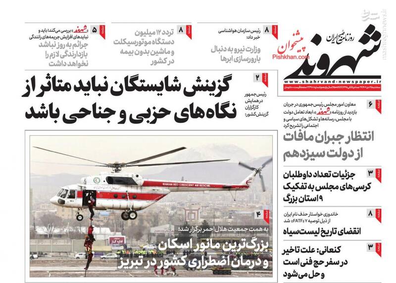 دوشنبه ؛ 24 آذر 1404 عکس/ صفحه نخست روزنامههای سهشنبه ۱۹ دی ۱۴۰۲