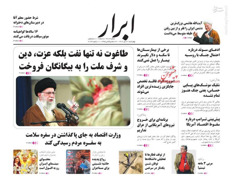 دوشنبه ؛ 24 آذر 1404 عکس/ صفحه نخست روزنامههای چهارشنبه ۲۰ دی ۱۴۰۲