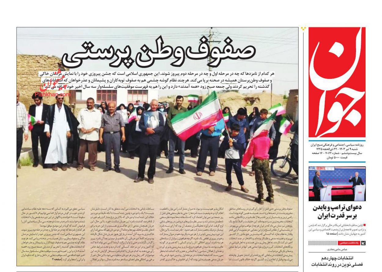 عناوین اخبار روزنامه جوان در روز شنبه ۹ تیر