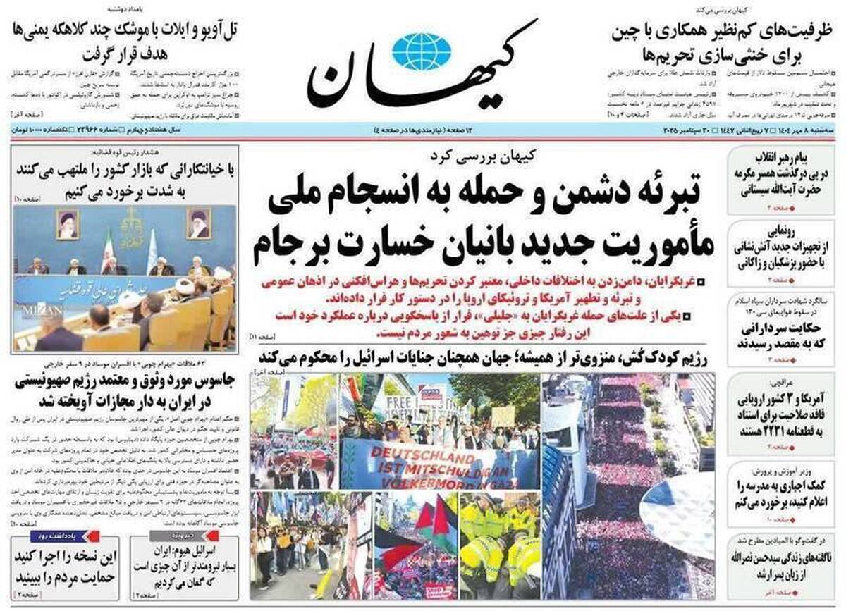 تبرئه دشمن و حمله به انسجام ملی ماموریت جدید بانیان خسارت برجام، نکنید این کارهارا، کشمکش ماشه، نقشه تصاحب غزه، شوخی با سفره مردم و...از جمله تیترهای روزنامه‌های سه‌شنبه ۸ مهر هستند.