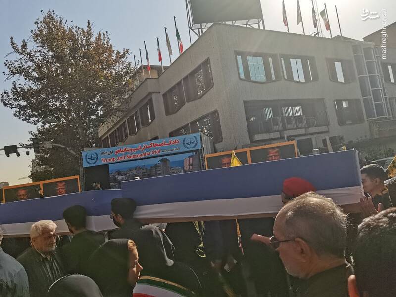 تشییع نمادین تابوتهای ترامپ و نتانیاهو نیز در حاشیه برگزاری این راهپیمایی انجام شد.