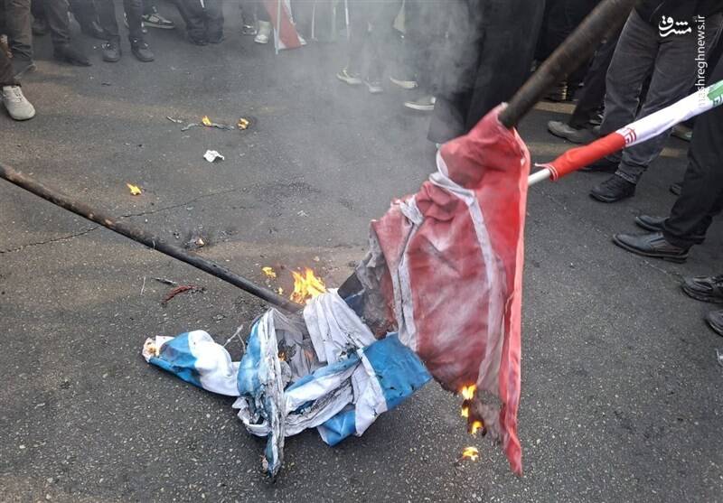 در حاشیه این مراسم پرچم آمریکا و اسراییل با شعار مرگ بر اسراییل و مرگ بر آمریکا به آتش کشیده شد.