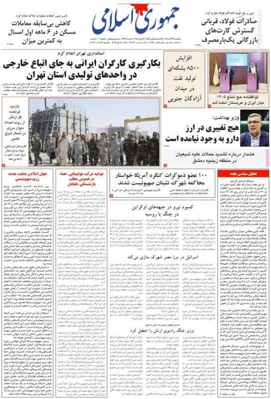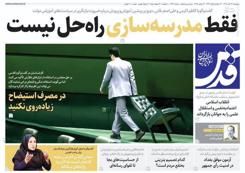 انتخابات عراق در آرامش و با مشارکت ۵۵ درصدی برگزار شد، زنگ زورآزمایی کریدورها، رای مقاومت و...از جمله تیترهای روزنامه‌های پنجشنبه ۲۲ آبان هستند.