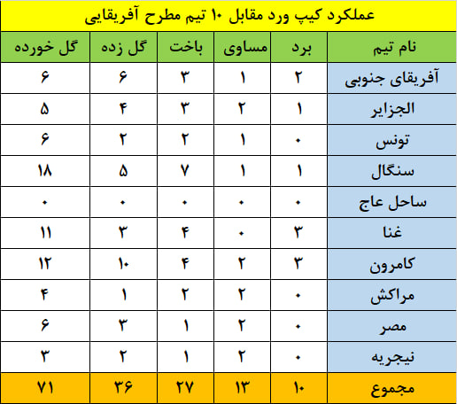 کارنامه نه چندان خوب مقابل قدرتهای قاره سیاه!
