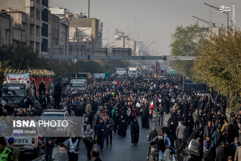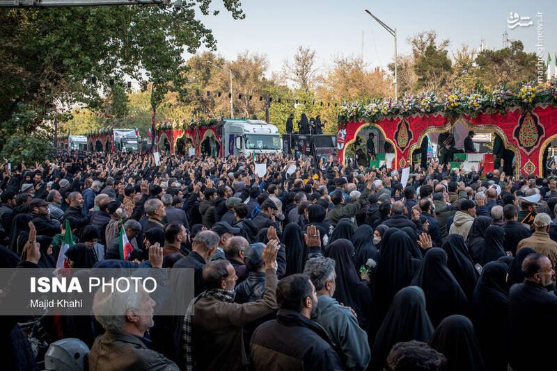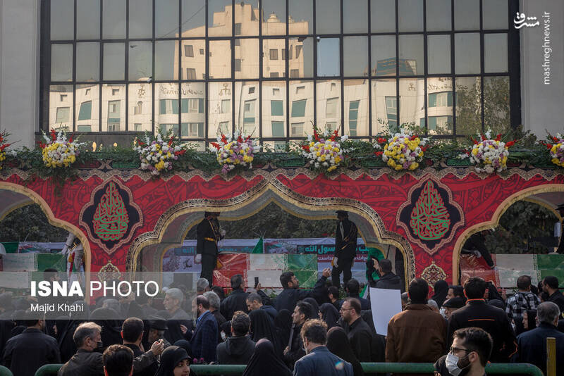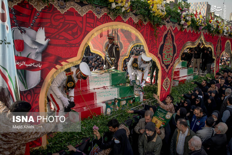 مراسم تشیع و وداع در تهران هم از در دانشگاه تهران آغاز شد و قرار است ۱۰۰ شهید گمنام از این مکان به سمت معراج شهدا تشیع شوند. مسیر حرکت کاروان شهدا در تهران از خیابان انقلاب و مقابل دانشگاه تهران آغاز میشود و کاروان شهدا با طی کردن خیابان انقلاب وارد خیابان حافظ شده و از آنجا تا خیابان بهشت معراج شهدا مسیر را ادامه میدهند.