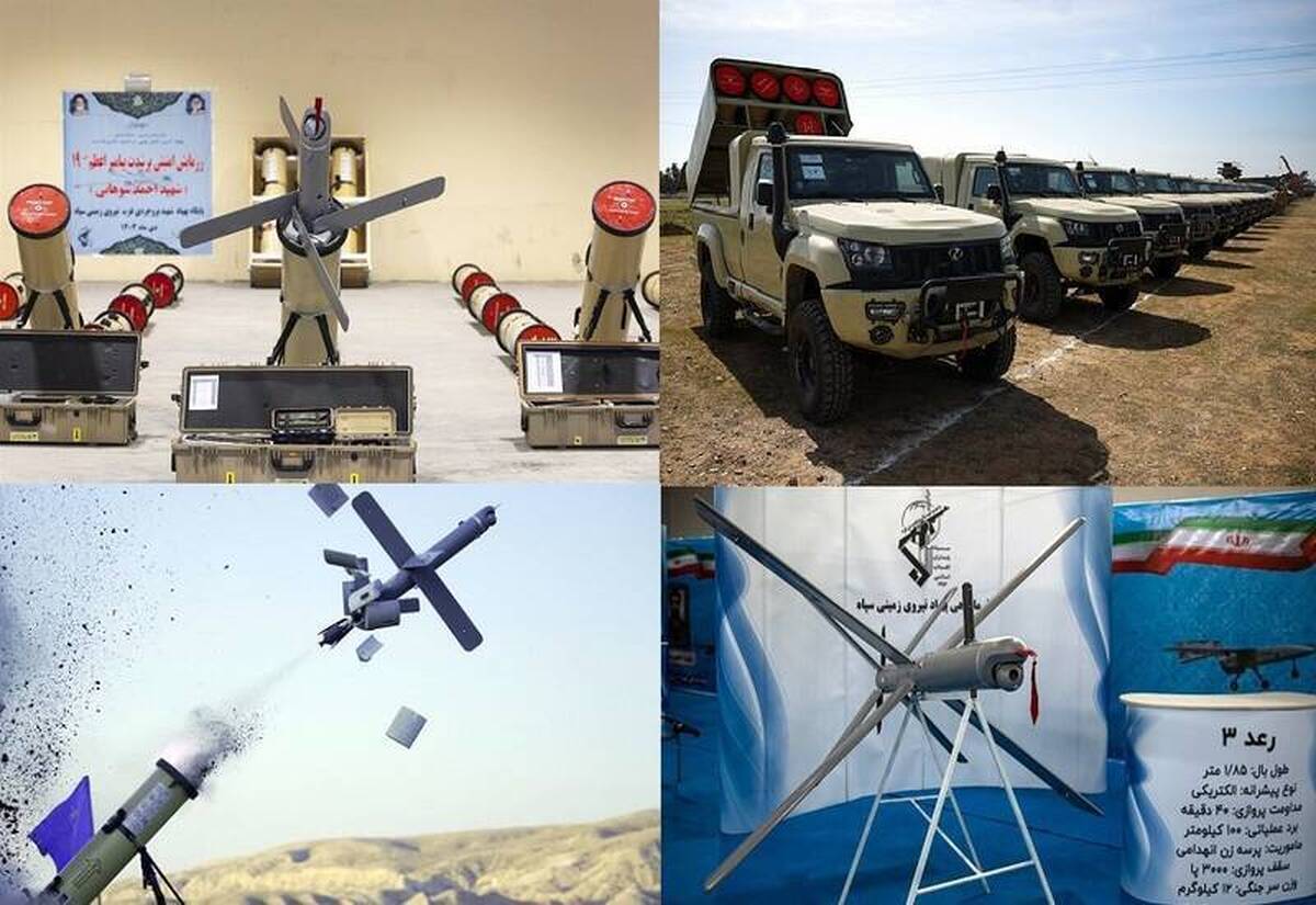 از شکار تروریست‌ها تا پرنده‌های دشمن با نسل جدید «مهمات پرسه‌زن» ایرانی/ «رعد»؛ خانواده خاص پهپادی ایران با طراحی ماژولار +عکس خودروی تاکتیکی ارس مجهز به پرتابگرهای رعد ۲